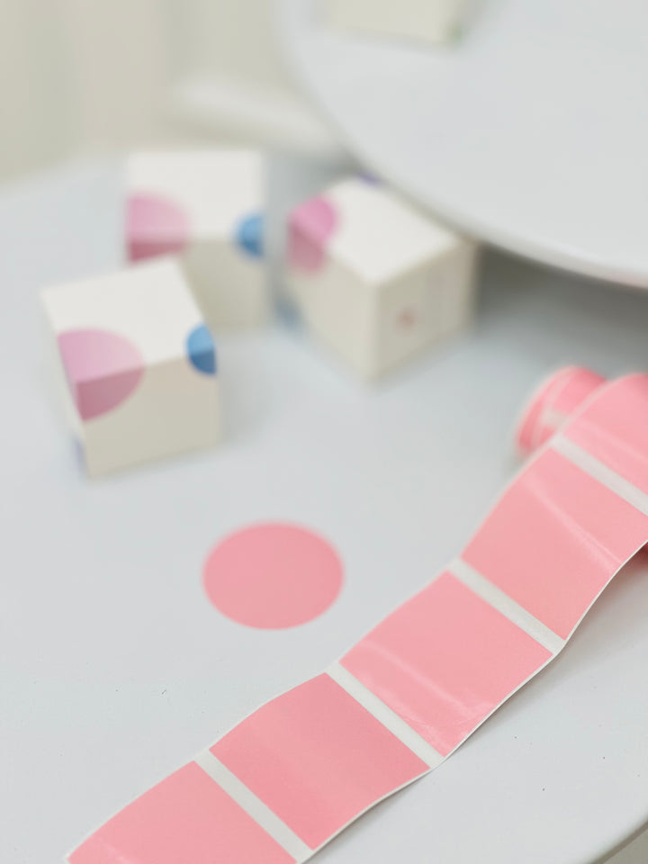 رول ليبل دائري بقياس مثالي 50×50 ملم، يأتي بلون وردي نقي ومناسب للطباعة الحرارية أو بطابعات الليبل. يتميز بسطح ناعم قابل للطباعة عليه بوضوح، سواء لطباعة اسم المشروع، الشعار، أو تعليمات صغيرة