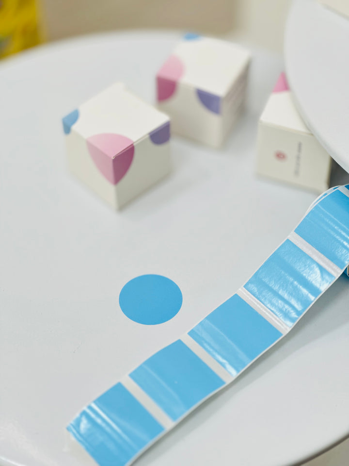 رول ليبل دائري بقياس مثالي 50×50 ملم، يأتي بلون أزرقنقي ومناسب للطباعة الحرارية أو بطابعات الليبل. يتميز بسطح ناعم قابل للطباعة عليه بوضوح، سواء لطباعة اسم المشروع، الشعار، أو تعليمات صغيرة